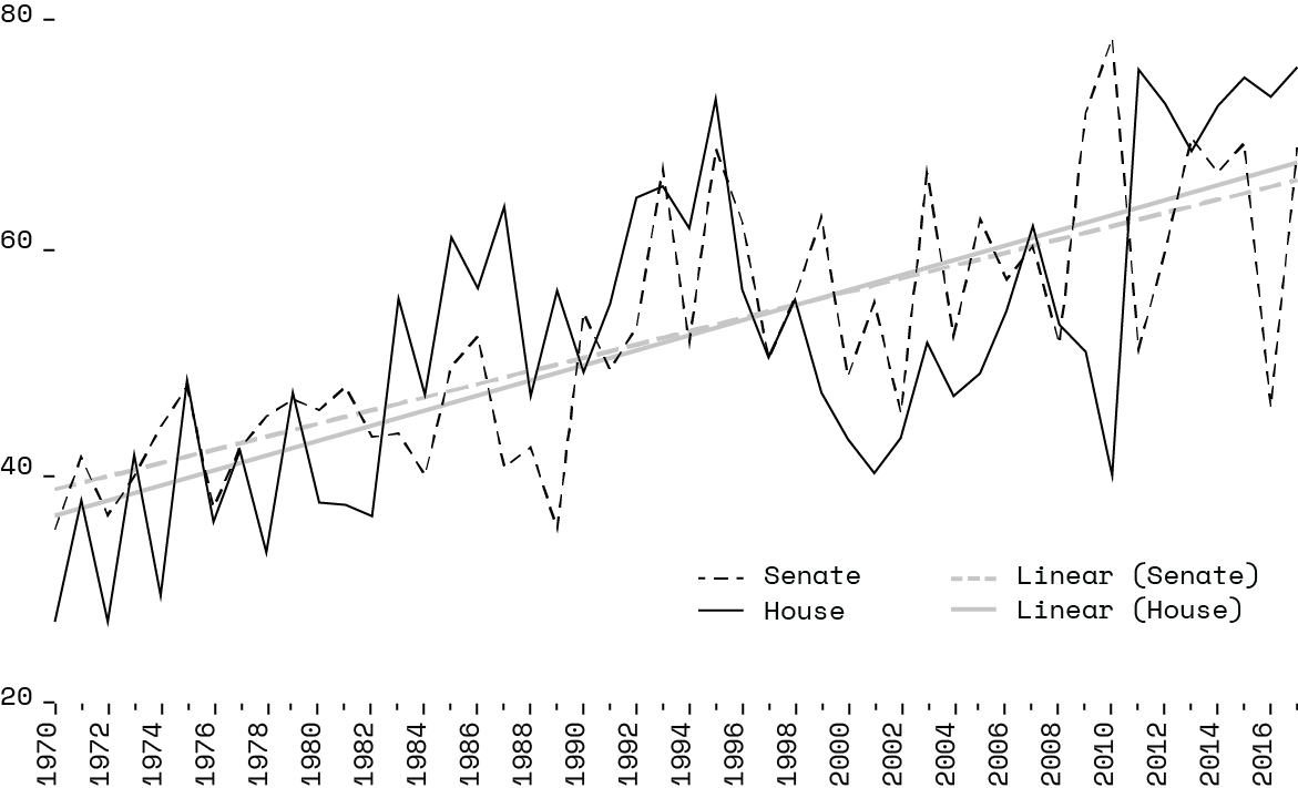 Party Unity Votes in Both Legislative Houses (1970–2016)